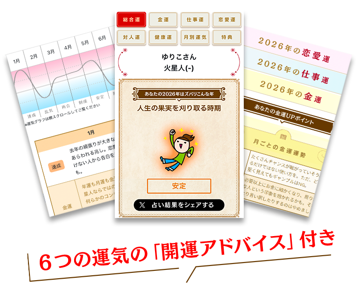 2026年の特典占いは、5つの鑑定からお好きな鑑定を選んで占う事が出来ます。最大で3000円相当の占いが選べるセットも!