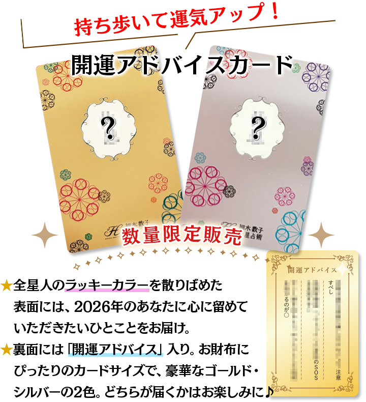 表面には2026年、心に留めてほしい一言を、裏面には「どう過ごせば良いか」の開運アドバイスが入ったカードです。