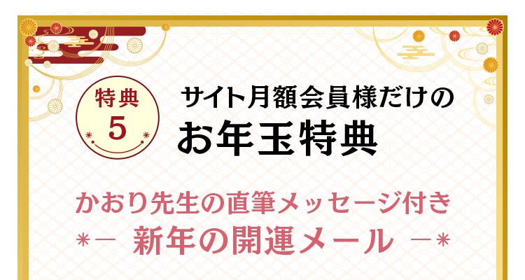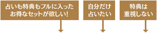 2026年の特典占いは、5つの鑑定からお好きな鑑定を選んで占う事が出来ます。最大で3000円相当の占いが選べるセットも!